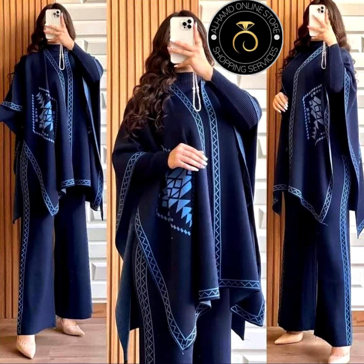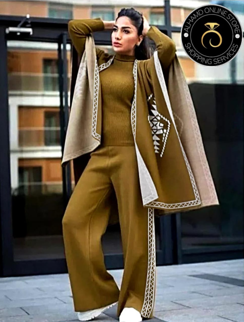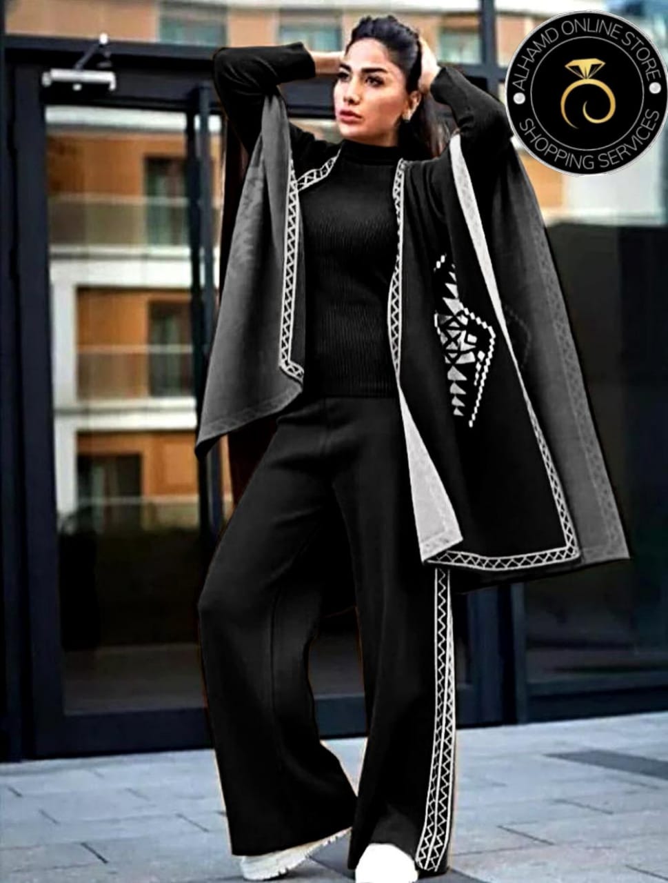 π Winter Fleece Arrival-Front & Back Printed Upper Shawl | Premium Rib High Neck | Printed Flapper – 3-Piece Premium Set π